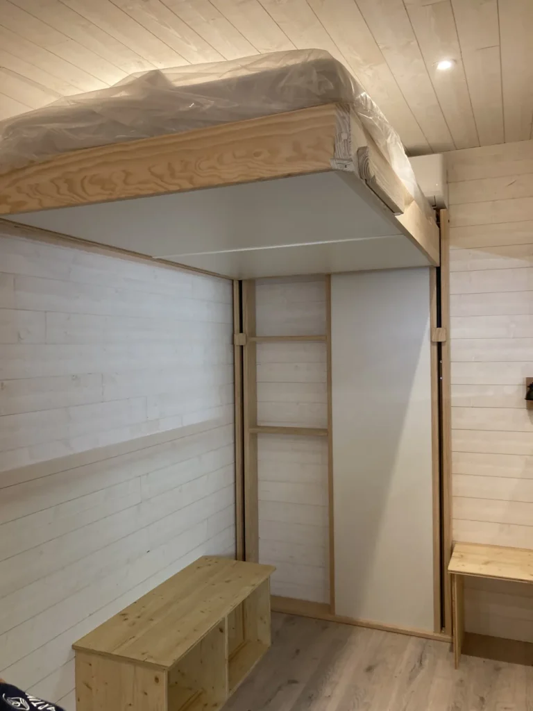 Des projets plus personnels, pour de l’HABITATION : alors nous cumulons nos savoirs faire, en proposant aussi le LIT LIFT (escamotable), qui peut descendre très bas et se remonter au plafond facilement. Un accès facile et un gain de place énorme !